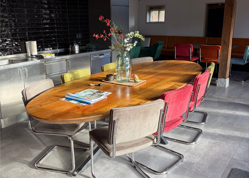 – Een eigen houtkachel, mand met haardhout staat klaar en stoken maar.